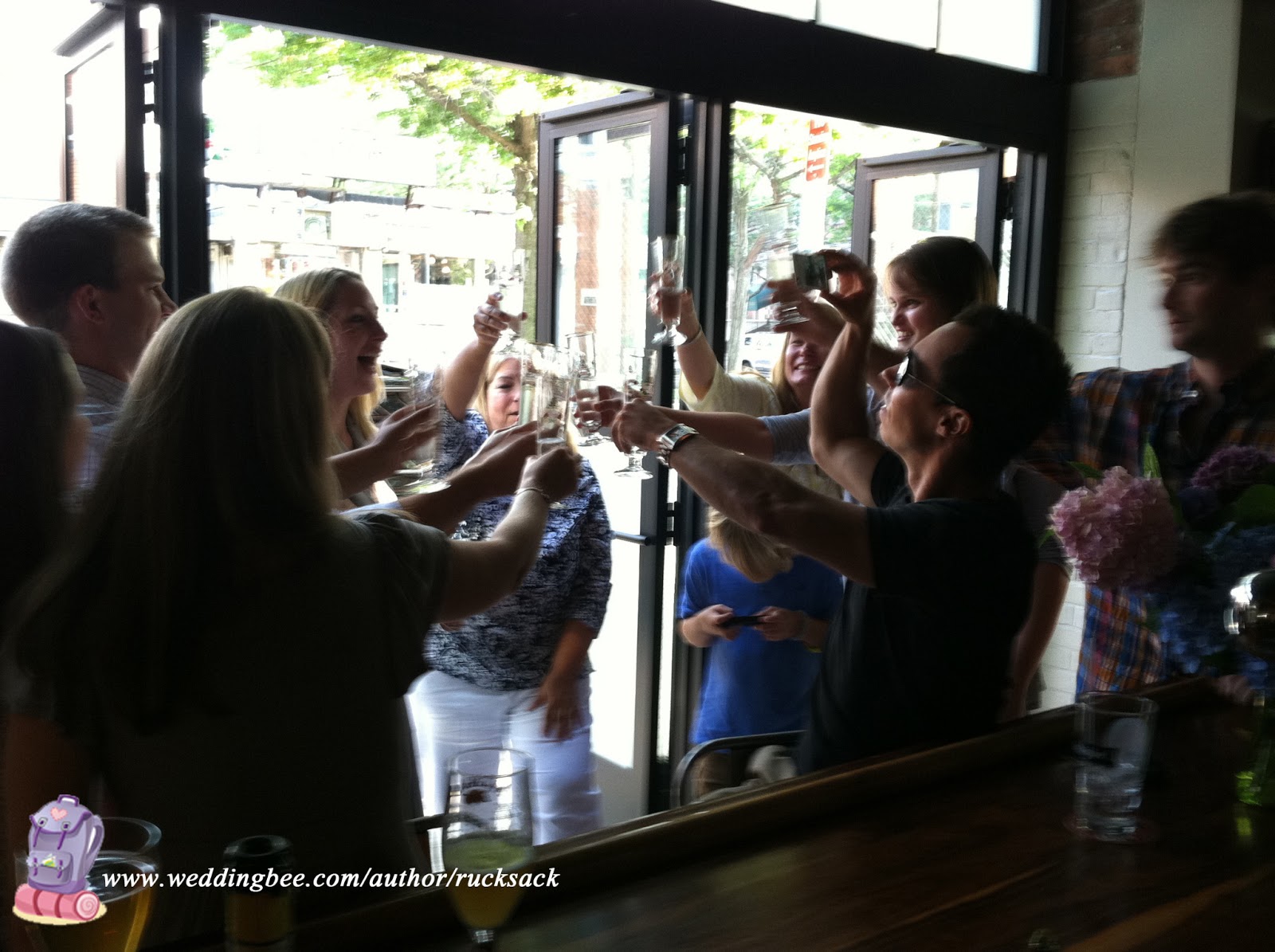 And then I saw two of my good friends at the corner of the bar. Followed by another friend sitting next to them. "We just ran into each other!" my best friend tried to explain. But it was too late. I turned to Mr. Rucksack to ask him just what in the hell was going on and saw him down on one knee.